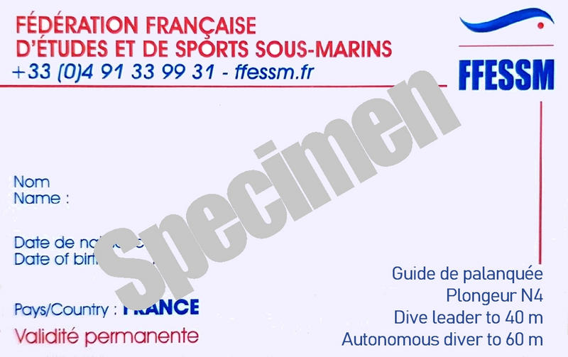 Le diplôme de « Guide de Palanquée ― Niveau 4 » (GP-N4) de la FFESSM atteste de la maîtrise des compétences requises pour exercer la fonction de Guide de Palanquée en exploration définie par le Code du Sport (Établissements organisant la pratique de la plongée subaquatique Art. A.322-71 à A. 322-101 et ses annexes notamment annexe III-15b de la sous-section 1).